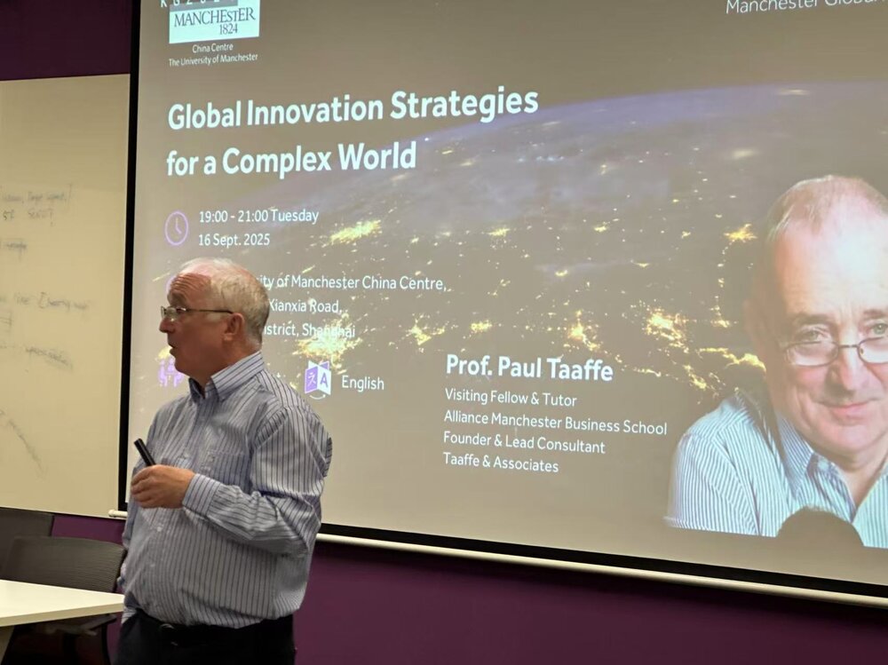On 16 September, 2025, the University of Manchester China Centre hosted a Global Part-time MBA Masterclass, featuring Professor Paul Taaffe on the theme: “Global Innovation Strategies for a Complex World.”